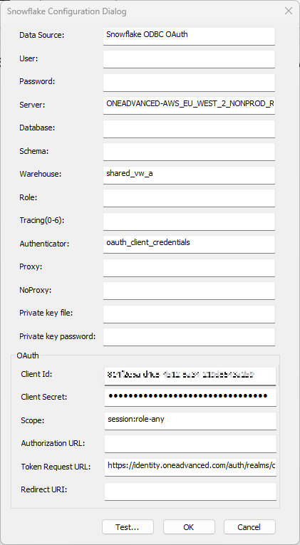 Configure the Snowflake ODBC Connector with OAuth (Client Credentials Flow)