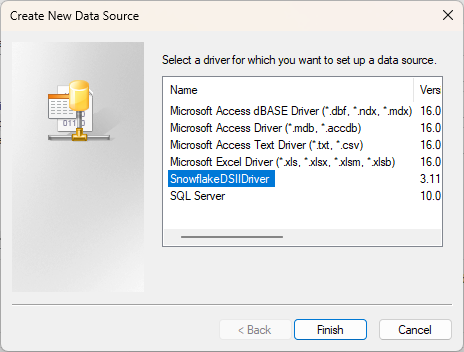 - Select SnowflakeDSIIDriver then click Finish.