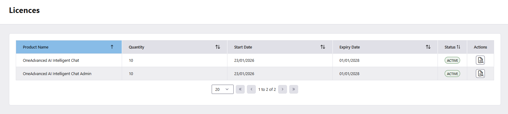 The Licence Module allows Customer Admins and User Admins to view and manage product licences allocated to their organisation. Using this module, admins can: